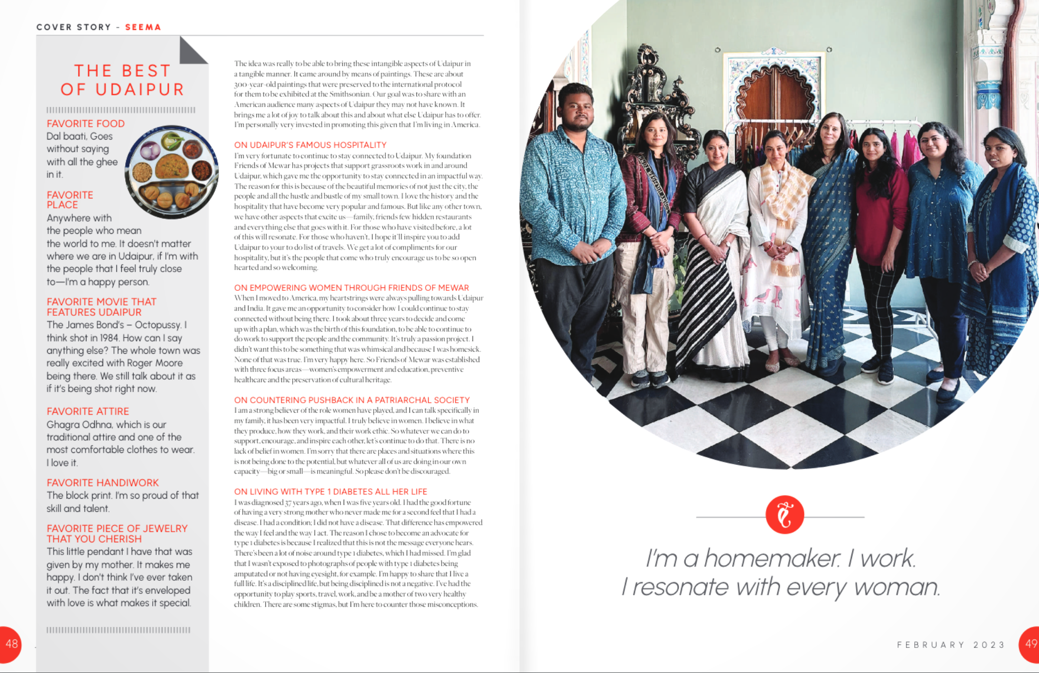 Padmaja Kumari Parmar, daughter of the House of Mewar and founder of Friends of Mewar, was featured in SEEMA Magazine’s February 2023 issue, where she shared her journey from royal Udaipur to life in America. In a deep conversation with Sundays with SEEMA, she reflects on her passion for cultural preservation, women’s empowerment, and community-driven impact through her foundation and personal story.